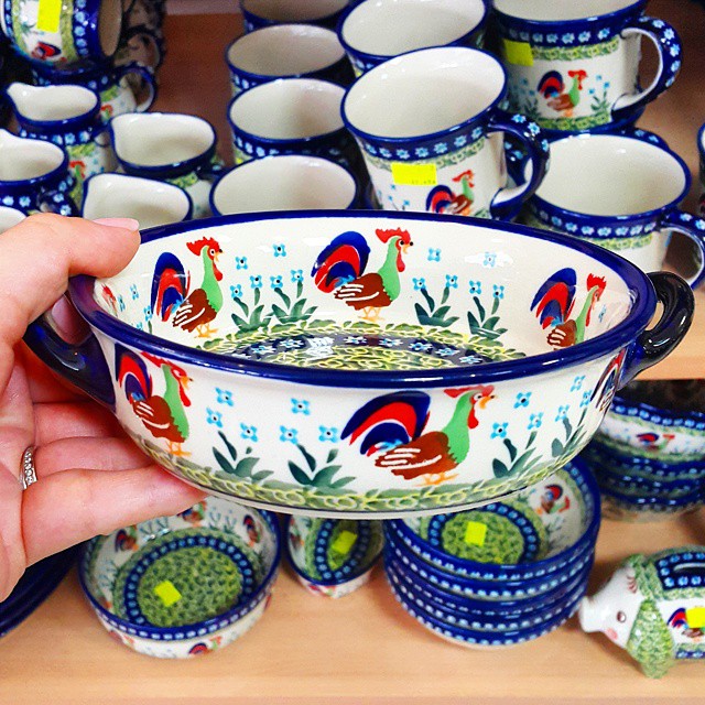 Odwiedziłam też sklep Bolesławca i wyszłam z talerzykiem z nowej kolekcji w koguty. Kupiłabym tam wszystko! Uwielbiam tę porcelanę i tylko zdrowy rozsądek oraz talerze wysypujące się ze wszystkich szafek w domu pozwoliły mi opanować tę żądzę.