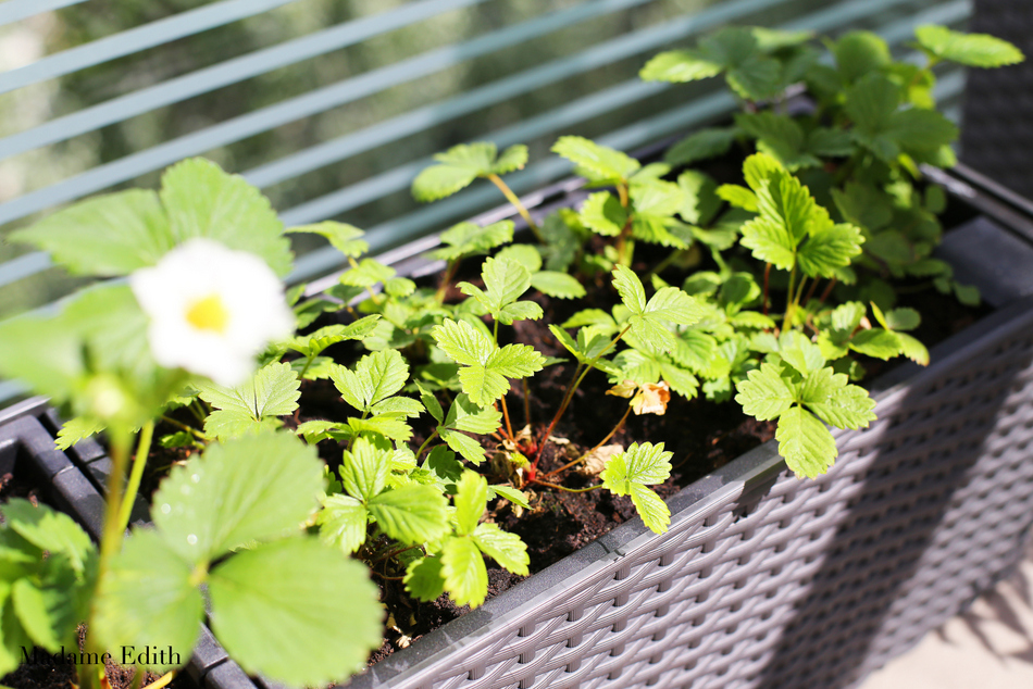 Mój ogród na balkonie wygląda jak na poniższych zdjęciach (ok. 40 dni od posadzenia). Wszystko wskazuje na to, że lada dzień zbiorę pierwsze truskawki 🙂