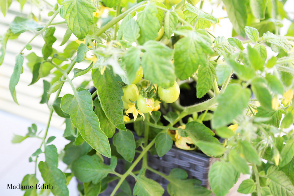 Po około dwóch tygodniach sadzonki były na tyle duże, że wymagały wsparcia. Wykorzystałam do tego celu bambusowe kijki oraz spinki (jak do storczyków). Dzięki temu pomidor nie złamie się pod ciężarem owoców, których jest już bardzo dużo.