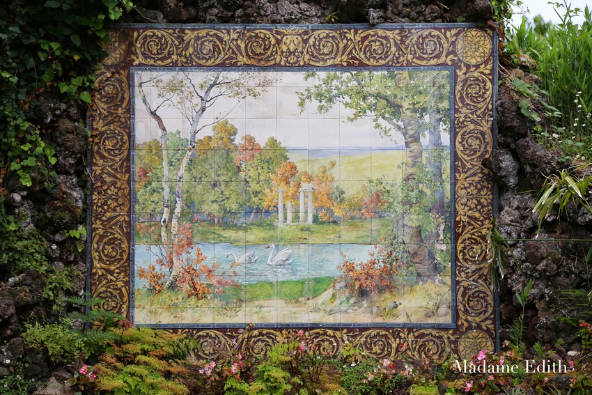 Pomiędzy roślinami usytuowano nawet fontanny i ławeczki nad któymi królują bardzo kolorowe ceramiczne widoczki, czyli typowe portugalskie azulejos.