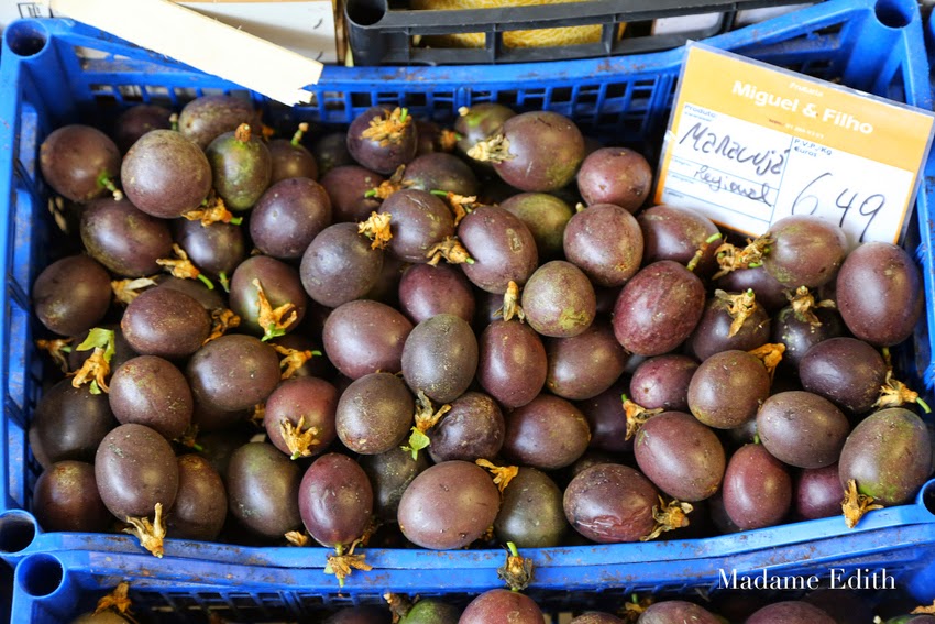 Były tu także, jak na Portugalię przystało, moje ulubione marakuje. Co prawda znaleźć tu można było tylko jedną odmianę, a nie kilkadziesiąt jak na Maderze (patrz wpis: „Mercado dos Lavradores„), ale i tak były znakomite.