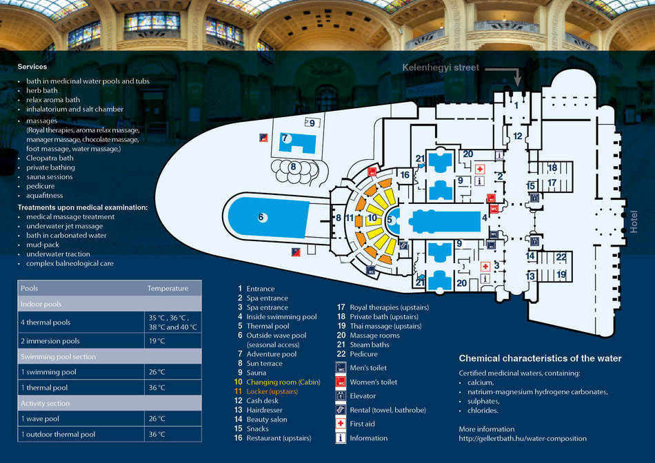 Kąpielisko przy słynnym Hotelu Gellert kusi cudną architekturą i kameralną atmosferą. Można się tu poczuć jak gość Gellerta za ułamek hotelowej stawki. Lubimy tu wracać, bo choć basenów nie ma wielu (zobaczcie poniższą grafikę), to atmosfera jest jedyna i niepowtarzalna. Można się tu poczuć jak na początku XX w. Ma się wrażenie jakby czas stanął w miejscu. To idealne kąpielisko sprzyjające relaksowi.