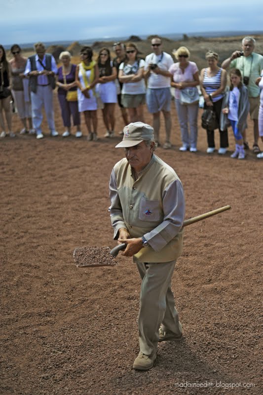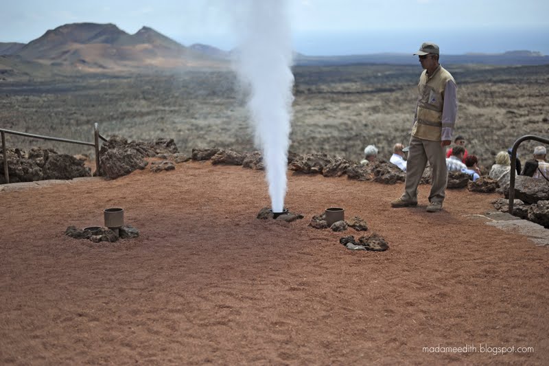 Do chwili obecnej w Timanfaya można poczuć wulkaniczny charakter wyspy – kamienie znajdujące się kilkanaście centymetrów pod ziemią osiągają temperatuę 80°C i uwierzcie, parzą w dłonie … jak diabli! A na głębokości 8 metrów temperatura dochodzi aż do 400-450°C – tak daleko nie kopaliśmy chcąc to sprawdzić – uwierzyliśmy na słowo naszej przewodniczce 🙂
