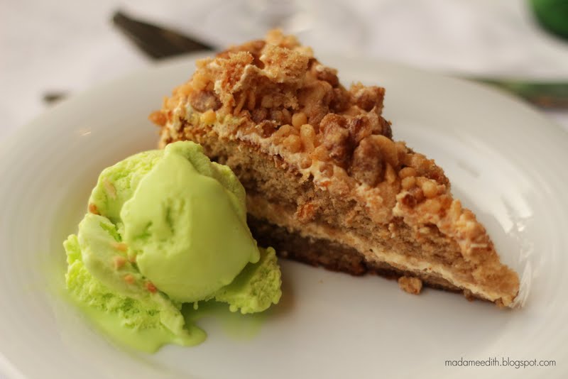 | Ciasto oliwkowe z kulką lodów pistacjowych |
