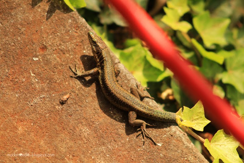 | Jaszczurka napotkana przy drodze. Identyczna chciała mi wskoczyć ostatniego dnia do walizki i pojechać ze mną do Warszawy 🙂 |