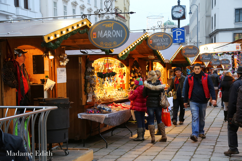 Jarmark Adwentowy na placu Freyung (przy opisywanej przeze mnie restauracji „Orlando di Castello„) w śródmieściu ma długą tradycję. Już w 1772 roku odbywał się tu jarmark świąteczny, a dzisiaj można tu zaopatrzeć się w rękodzieło, szklane dekoracje, ozdoby choinkowe, wędliny i ceramikę. Jak na prawdziwy jarmark przystało przy jego wejściu znajdziemy stoisko z pieczonymi kasztanami.