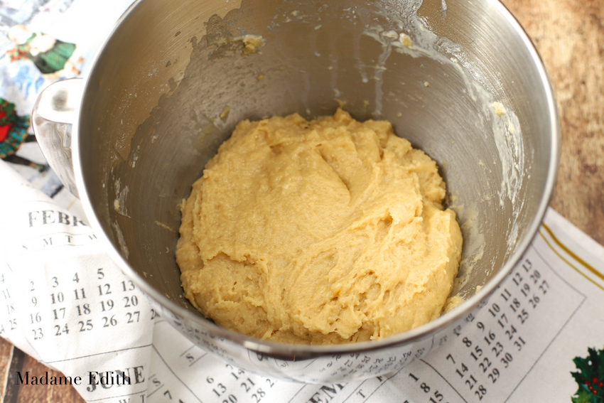 Mąkę mieszamy z cukrem.