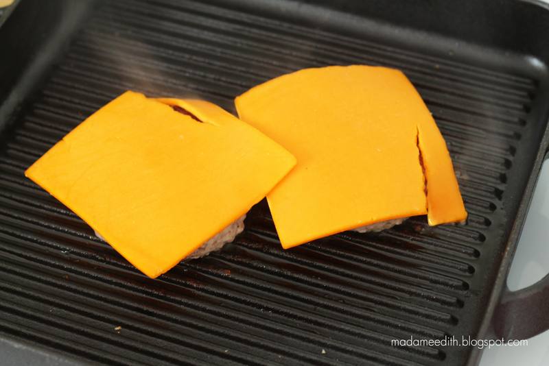 …i na wierzch wrzucamy po plastrze sera. Znowu grillujemy ok. 3 minut aż ser się rozpuści i oblepi mięso.