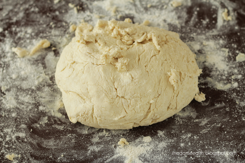 Ciasto przekładamy na podsypaną mąką stolnicę / silikonową matę.