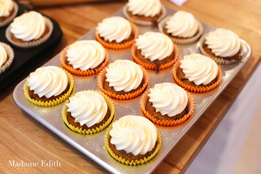 Muffiny z dynią, a po udekorowaniu dyniowe cupcakes, są świetnym rozwiązaniem na małe przyjęcie. Każdy bowiem może dostać swoje indywidualne ciasto ozdobione jesiennymi, jadalnymi figurkami z masy cukrowej. Po raz pierwszy robiłam je dwa tygdnie temu na warsztatach kulinarnych. Kiedy przyniosłam je do domu nie mogłam się na nie napatrzeć. Aż szkoda było je zjadać, bo tak mi się podobały.
