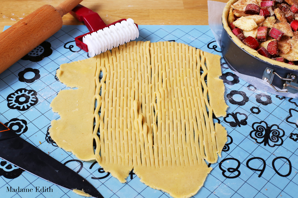 zrobiłam kratkę na szybko dzięki sprytnemu, plastikowemu urządzeniu. Oczywiście możecie zrobić kratkę tradycyjną jak w przepisie na amerykańską szarlotkę.