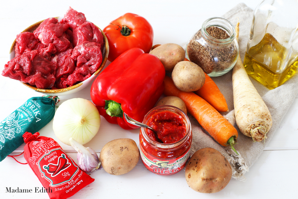Jestem pewna, że zupa podbije Wasze podniebienia. I od razu, uprzedzając pytania, napiszę, że węgierskiej papryki w proszku nie można porównać do tej sprzedawanej w polskich sklepach – ma nawet zupełnie inny kolor, jest bardziej pomarańczowa – stąd też kolor zupy. Warto się postarać i kupić też ostrą pastę, bo to ona nadaje zupie ostatecznego smaku i ją wykańcza. W Polsce dostaniecie ją bez problemu w każdym sklepie specjalizującym się w kuchni węgierskiej. Jest także do nabycia w wielu sklepach internetowych, a nawet na aukcjach. Oczywiście w sklepach lub na stoiskach z kuchniami świata w dużych marketach także powinna być dostępna. Szukajcie pod hasłem „Erős Pista” (producentem jest firma Univer).