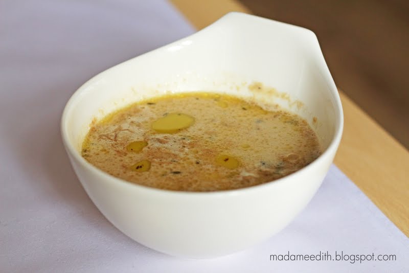 Przyznam, że sposób podania samej zupy mnie trochę zawiódł, bo nawet nie było do niej żadnego talerzyka (widziałam jak podawana jest zupa dyniowa, która wyglądała niesamowicie!), za to smak kluseczków w połączeniu z prawdziwymi grzybami wynagrodził to małe niedociągnięcie.