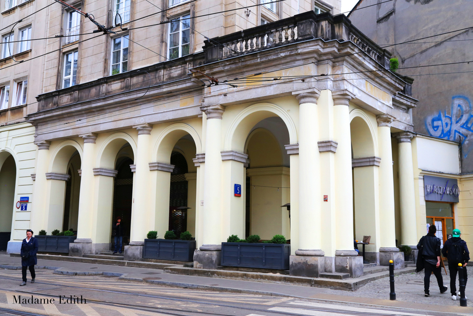 Ostatecznie zajmujemy spory, drewniany stół na zewnątrz z kapitalnym widokiem na Kościół Zbawiciela. Jest w miarę ciepłe sobotnie popołudnie, święci słońce, więc miejsce to zdaje się być idealne na niespieszny posiłek. Zaczynamy od czegoś na rozgrzanie, czyli bio herbaty i kawy (8 i 10 zł). Ta pierwsza ma bardzo oryginalny smak, choć to Earl Grey, to nie byle jaki. Oprócz bergamotki ma także odrobinę lawendy, która fajnie urozmaica znany smak.